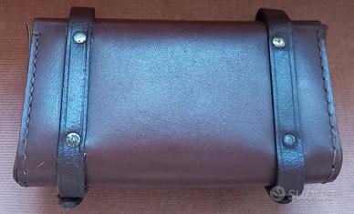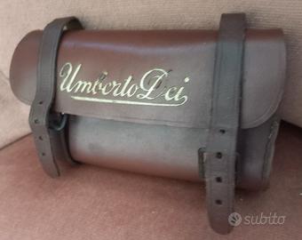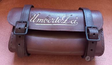 propongo borsello sottosella per bici Umberto Dei d' epoca , le cinghie sono in pelle mentre la struttura mi pare in cartone pressato o plastificato. visto il materiale di costruzione lo daterei anni 50/60 , ma si abbina molto bene anche su biciclette di epoca precedente negli anni 20 / 30 / 40 erano i cuoio ma di Foggia molto simile. E' in buone condizioni estetiche, le cinghie sono sane e funzionanti, un po duro da aprire, mostra qualche segno del tempo visibile comunque in foto. chiedo 40 euro , gradisco il ritiro a mano in caso di spedizione bisognerà aggiungere 10 euro.per il motore di ricerca: Bianchi ; Legnano ; Dei ; wolsit ; taurus ; ganna ; Stucchi ; Maino ; tauring ; Ciclo Italia ; tebro ; silca ; paioli ; radius ; berko ; balaco ; marelli ; dansi ; radsonne ; bulli ; eccc