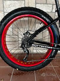 Vendo bottechia fat bike usata poco taglia 44, cerchi da 26 cambio shimano a 9 rapporti osteriori e 2 anteriori, freni a disco shimano.