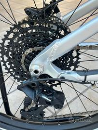 Motore Oli Sport Plus 85 Nm con batteria da 900 Wh. e display Oli LCD High Vision. Telaio in alluminio con forcella Rockshox 35 Silver RL 150 mm. e ammortizzatore Rockshox Deluxe RL. Cambio Sram SX Eagle 12velocità. Freni Shimano BR-MT420 4p. Ruote Mullet da 29" (anteriore) e 27,5" (posteriore)