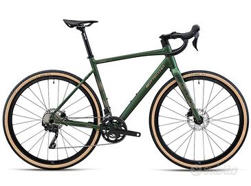 Bottecchia Gravel Monster Shimano GRX 610 2x12, disponibile in pronta consegna nella misura 54 (1.75 - 1.83), colore verde sabbia metallizzato, telaio Alu 6061 idroformato con saldature carbon look, forcella carbonio monoscocca, perni passanti ant e post, trasmissione 46/30 11-36, freni disco idraulici, ruote GPM 825/3 Tubeless Ready con coperture Vittoria Terreno T 700x40, piega manubrio Deda Superzero flat e sella Selle Italia X Model. Listino 1999, prezzo promo 1690