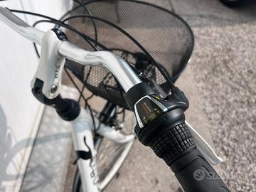 Labici presenta ruote da 28 pollici, permettendo di avere una maggior scorrevolezza e di percorrere anche lunghe distanze. Inoltre, il piantone del manubrio multiposizione consente di regolare il manubrio in modo che la bici risulti comoda. La bici è inoltre dotata di cambioa7 rapporti posteriori e 3 anteriori, il quale permette di affrontare qualsiasi salita o sconnessioni del terreno, e grazie alle coperture robuste affrontare anche facili sterrati tipo percorsi verdi e strade bianche.E’ adatta a donne di staura tra i 150 cm e i 180 cm di altezza.