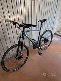 Vendo bellissima Bottecchia Lite Cross per inutilizzo. La bici ha solo due anni di vita ed è stata utilizzata pochissimo (percorsi meno di 200 km totali, esclusivamente su asfalto). È la compagna ideale sia per il commuting urbano che per gite fuori porta su sentieri e strade bianche. Caratteristiche principali: • Stato: Come nuova, nessun graffio rilevante, meccanica perfetta. • Telaio: Alluminio leggero, geometria confortevole. • Forcella: Ammortizzata SR Suntour (ottima per assorbire le asperità del terreno). • Freni: A disco (frenata sicura in ogni condizione). • Cambio: Shimano (preciso e affidabile). • Ruote: Raxe TL20 con coperture ibride (scorrevoli su strada, stabili sullo sterrato). La bici è sempre stata tenuta in garage al coperto. Non necessita di alcuna manutenzione, è pronta all'uso. Disponibile per visione e prova. Consegna a mano in zona Pinerolo