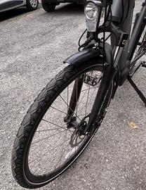 Vendesi nuovo mai usata Marca BRINKE modello FLORENCE taglia xs ruota da 26” Caratteristiche : TELAIO IN ALLUMINIO STEP TROUGH - Ruote 26'' taglia XS, 28'' taglia S'' - passaggio cavi interno Sistema Motore Motore centrale DAPU 36V - 250W - 80Nm Batteria Integrata 374Wh Display Lcd Sospensioni Forcella Forcella ammortizzata Suntour Nex Cockpit Attacco Manubrio Alluminio regolabile Manubrio Alluminio larghezza 610mm Reggisella Reggisella 27.2mm Sella Comfort con elastomeri FRENI Freno Anteriore Freno a disco meccanico Freno Posteriore Freno a disco meccanico Rotori 180mm anteriore - 160mm posteriore TRASMISSIONE Deragliatore Posteriore Shimano Altus 8 velocità Comando Shimano Altus 8 velocità Cassetta ShimanoCS-HG41 11-34T 8 velocità Catena KMC X8 Guarnitura Alluminio pedivelle 38T Ruote Mozzo Anteriore Alluminio 100mm QR Mozzo Posteriore Alluminio 135mm QR Cerchio Anteriore Alluminio Cerchio Posteriore Alluminio Pneumatico Anteriore Kenda K935 26''x1.75'' taglia XS - 700x40C taglia S Pneumatico Posteriore Kenda K935 26''x1.75'' taglia XS - 700x40C taglia S Accessori Portapacchi Alluminio Parafanghi 52mm Cavalletto Laterale