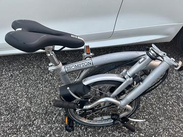 Bicicletta pieghevole Brompton 2004 modello A Line con manubrio M alto, più comodo, così puoi tenere la schiena dritta.
