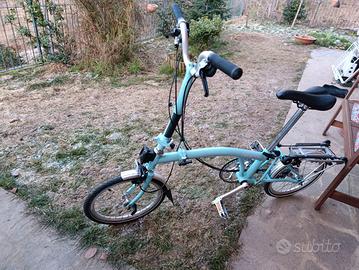 BROMPTON azzurra con borsa nera, usata un solo pomeriggio (causa cambio residenza in località montuosa e inadatto a questo modello. ) completa di borsa BROMPTON nera. (Prezzo con borsa)