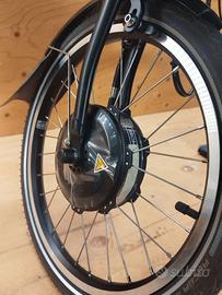 Bici Pieghevole Brompton Electric 6 marce manubrio H color salmone/arancio (anche se nella foto sembra arancio e basta :-) Provenienza : bici in esposizione da storico rivenditore locale Brompton che ha dismesso lo store pieghevoli - La bici è un modello 2023, il motore è stato appena sostituito da Brompton per un richiamo in garanzia. La batteria , come evidenza la diagnostica che possiamo fornire al cliente, mantiene uno stato di salute di 100 su 100 ed ha effettuato solo due cicli di ricarica. La bici è stata pedalata solo il necessario per la messa a punto. Completa la dotazione inclusa nel prezzo la borsa anteriore large , la transit bag cover da sella per il rimessaggio della bici piegata, il reggisella telescopico - Forniamo diagnosi al momento del ritiro - dotata di caricatore originale - La bici viene venduta SOLO dopo prova gratuita sul campo nella zona di Bologna - Non viene fornita alcuna garanzia - Per le future assistenze e gli interventi di manutenzione la pieghevole in oggetto può beneficiare della rete ufficiale Brompton presente un po' in tutta Italia. Non spediamo l'oggetto - Ritiro possibile anche nei week-end previo avviso preferibilmente telefonico (come si faceva in quella strana era pre-digitale) - Il prezzo non è trattabile in quanto si tratta di un esemplare a km 0 venduto ben al di sotto del prezzo di costo