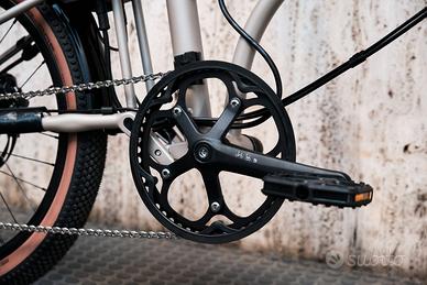 Brompton G Line Electric | Traildust White Bici elettrica pieghevole gravel – Subito disponibile da MOEZ Da MOEZ, rivenditore ufficiale Brompton Electric, trovi in pronta consegna la nuova Brompton G Line Electric nel raffinato colore Traildust White. Brompton è uno storico marchio inglese specializzato in bici pieghevoli di alta qualità, progettate per durare nel tempo, affidabili e robuste. Con la G Line Electric, la celebre compattezza Brompton incontra il fuoristrada e il mondo Gravel: ruote da 20" con pneumatici dedicati e potenti freni a disco: una bici elettrica pieghevole ancora più scorrevole, reattiva e performante su tutte le superfici. Dotazione: Taglia: unica (150–200 cm) Motore: e-Motiq 250 W, 24 Nm Batteria: e-Motiq 345 Wh (fino a 90 km) Cambio: Brompton 4 velocità Portapacchi: posteriore integrato Pneumatici: Schwalbe G-One 20″ Freni: doppio perno a disco Luci: Lezyne e115 StVZO Peso: da 16,2 kg senza la batteria La G Line Electric si distingue per le ruote di grandi dimensioni e il telaio irrobustito che migliorano la guida offroad. Il sistema e-Motiq con sensore di coppia offre tre livelli di assistenza, Start Assist e gestione intelligente dell’autonomia, per una pedalata fluida e naturale, soprattutto in salita. La batteria da 345 Wh si sgancia in un attimo per la ricarica. Gli aggiornamenti wireless mantengono il sistema sempre ottimizzato. Compatta come solo Brompton sa essere, questa bici elettrica pieghevole si chiude in pochi secondi. Grazie al sistema SuperRoll puoi spingerla facilmente da piegata in modalità Shopper o Suitcase. Con il kit opzionale SuperRoll+ la scorrevolezza aumenta ulteriormente. Ideale per commuting urbano, treno, taxi e weekend fuori porta. Leggera da sollevare, veloce da piegare, pronta all’uso. Acquistando da MOEZ hai consulenza professionale, assistenza dedicata e servizio post-vendita qualificato. Disponibile ora. Contattaci per informazioni o vieni a provarla in negozio.