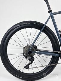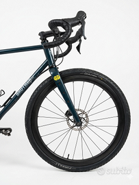 compagna di viaggio. indubbio che ha segni di usura. piccoli graffi da colpi di sassi. il telaio è ricoperto con pellicola di protezione Mehteh - brother cycles 2024 Taglia L (56) *Tubazioni telaio: Triangolo principale in acciaio chromoly Reynolds 725 trattato termicamente a doppio spessore, con rivestimento ED (elettrodeposizione) * Forcella: Full carbon disc con cannotto conico 1.5″ – 1.1/8″, attacchi per parafanghi/triple cage, passaggio cavi dinamo e forcellini flip chip, perno passante 12x100mm TA (incluso) * Trasmissione: Shimano GRX 2x10 velocità * Guarnitura: Corone 28/44t * Pacco pignoni: 11/36t * Ruote: In carbonio 23x450 x 700 * Reggisella: Ritchey in carbonio * Manubrio: Ritchey WCS * Compatibilità freni: Flat mount, dimensione massima disco 160mm * Dropout posteriori: Perno passante 12x142mm TA (incluso) * Fornellino cambio: Tipo SRAM UDH * Diametro reggisella: 27.2mm * Diametro collarino sella: 30mm (incluso) * Serie sterzo: 44mm, ZS44/28.6 superiore, EC44/40 inferiore (non inclusa) * Diametro fascetta deragliatore anteriore: 28.6mm * Scatola movimento centrale: 68mm, filettatura ISO (BSA) * Passaggio ruota massimo: 700c x 50mm, 650b x 2.2" * Passaggio cavi: Guide esterne a tutta lunghezza per deragliatori e freni * Attacchi portaborraccia: 3 set su tutte le taglie * Predisposizioni: Attacchi per portapacchi posteriore e parafanghi * Peso telaio (taglia M): 2.3kg * Peso forcella (cannotto non tagliato): 0.55kg