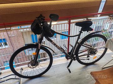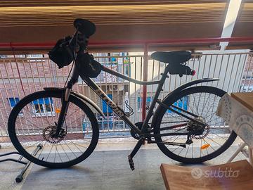 Vendo bicicletta trekking RIVERSIDE 500 usata solo tre volte. Versatile e comoda, questa bici ibrida è ottima per uscite regolari su sentieri, strade e percorsi. Il telaio in alluminio la rende leggera, mentre i freni a disco garantiscono una frenata efficace. Taglia: L Colore: grigio carbone - rosso La bicicletta include i seguenti accessori: sellino in memory foam, parafango anteriore e posteriore, specchietto retrovisore, campanello, porta borraccia, portacellulare, n. 3 portaoggetti, catena con combinazione numerica, supporto universale per bicicletta da terra verticale. Roma: zona Marconi