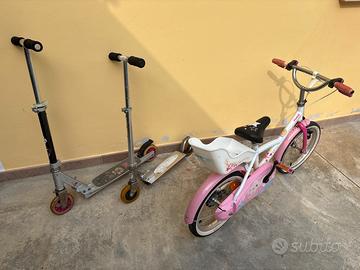 Bici perfettamente funzionante, manopole da cambiare perchè cotte. In omaggio due monopattini.