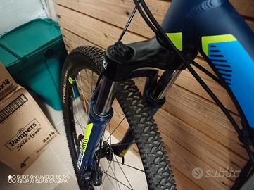 Vendo Btwin Rockrider 520 MTB Blu taglia M 27,5 nuova mai usata, freni a disco, telaio leggero in alluminio, ammortizzatore anteriore, cambio Shimano 24 rapporti, sedile sportivo.