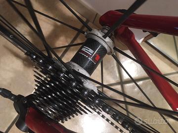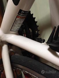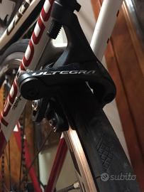 Caad 10 Cannondale,taglia 52 tutta Ultegra, con ruote fulcrum 0 grandissima scorrevolezza e senza manutenzione. La caad 10 apprezzatissima dai professionisti per il peso, (8.5kg),che è paragonabile al carbonio anche essendo di resistentissimo alluminio. può essere usata anche su rullo cosa questa che con il carbonio non è possibile.Dalle foto si vede che è tenuta maniacalmente anche per le poche uscite fatte. Da poco cambiati i copertoni vittoria e le pinze freni sempre Ultegra, con un particolare importantissimo, sono predisposte per montare copertoni da 28 anziché da 26(quelli che sono istallati adesso).