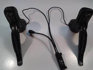 Vendo cambio elettronico completo di cavi e cablaggi con batteria Dure Ace - Shimano 10 velocità + leve freni SP 7970, deragliatore anteriore e posteriore FD 7970 (da riparare) ottimo per ricambi, il tutto tenuto benissimo e dotato di carica batteria