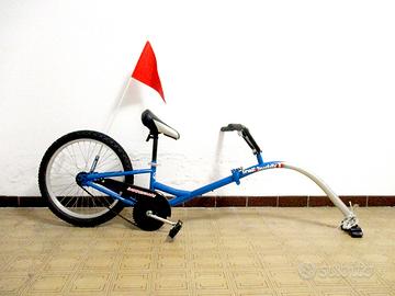 CAMMELLINO RIMORCHIO PER BICICLETTA BARRACUDA TRAIL BUDDY – BICICLETTA DA TRAINO PIEGHEVOLE. Ruote da 20 pollici con pneumatici a tassellatura da MTB leggero, praticamente nuove, manopole nuove, catarifrangenti già montati, manubrio alto tipo BMX per un’ottima sicurezza e paracolpi sulla barra orizzontale del manubrio, bandierina di sicurezza. Si presenta in condizioni estetiche buone ed è funzionalmente impeccabile. Si tratta di un rimorchio che si adatta a quasi tutte le biciclette, si attacca al tubo reggisella. È pieghevole e quindi si può riporre comodamente nel bagagliaio dell’auto, quando si hanno già le biciclette sul portabici. Fornisco comunque insieme un portabici da tetto dedicato, e un attacco supplementare (nel caso si voglia utilizzare su MTB e bici da strada senza dover smontare nulla). È stato revisionato integralmente a fine stagione (appena prima della messa in vendita). Preferisco lo scambio di persona, in caso di spedizione, le spese sono a carico dell’acquirente.