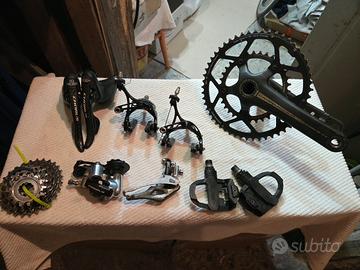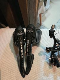 Campagnolo chorus carbon 10V guarnitura 52/34 leve 172,5 pinze freni record (pinza posteriore da revisionare ) condizioni generali buone, qualche segno di usura. preferisco consegna a mano
