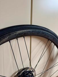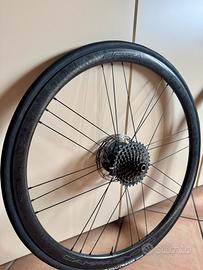 Vendo Campagnolo Bora WTO 33 DB acquistate nuove e usate per circa 1000km come coppia di ruote alternative in giri con molto dislivello e lunghe salite. Montate con copertoni tubeless Continental GP 5000 STR misura 25 praticamente nuovi