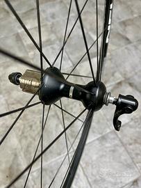 Vendo ruote in ottime condizioni Campagnolo Neutron , corpetto Campagnolo 11v e quindi adatto andhe alle 12v poste frenanti ottime e mozzi perfetti , scorrono molto ma molto bene . Complete di sganci rapidi qr