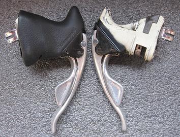 Versione del 1993 con il corpo della leva in metallo e pratiche piccole viti per regolare la posizione iniziale della leva freno e della levetta del cambio.