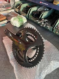 Vendo gruppo Campagnolo Super Record EPS DB: Guarnitura Super Record Ultra Torque TI Carbon (2x12 velocità) (52/39) Leve freno/cambio Super Record EPS DB Ergopower (sinistra + destra) Pinza freno a disco idraulica (attacco piatto, anteriore + posteriore) Deragliatore Super Record EPS (2x) Deragliatore posteriore Super Record EPS (12 velocità) ( difettoso da revisionare) Cassetta Super Record(11-29 denti) Batteria. Vendo ad un prezzo irrisorio perché il cambio posteriore dev’essere riparato. Il gruppo è il top di gamma di campagnolo non c’è bisogno di specificare altro. C’è tutto quello che vedete in foto. Per la ricerca shimano dura ace sram red force ultegra di2 axs pinarello bianchi colnago