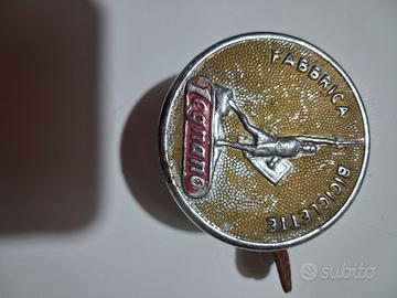Campanello vintage per bicicletta - Design rotondo con finitura dorata. - Immagine di un ciclista in movimento. - Scritta Fabbrica Bici e Legnano. Questo campanello per biciclette Legnano è un pezzo classico del design ciclistico italiano, risalente principalmente agli anni '50 Dettagli del Campanello Il design presenta l'iconico stemma "Alberto da Giussano", il guerriero simbolo del marchio Legnano, con la dicitura "Fabbrica Biciclette".