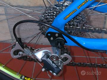 Cannondale Caad 3 colori ufficiali "team blue" Volvo, una bici che ha fatto la storia della mountain bike, vincendo diversi titoli mondiali dal 1994 in poi nel Cross Country, in particolare con David “Tinker” Juarez e Alison Sydor. Telaio in alluminio leggero made in USA. Ammortizzatore centrale bloccabile nel piantone del manubrio “HeadShok Fatty”. In ottime condizioni, tutta originale e tutta montata Shimano Deore XT 3X8 velocità, cerchi Mavic. Taglia S. Sella San Marco Light Concor vintage nuova. Totalmente revisionata e pronta all'uso, catena, copertoni, pattini freni e camere d'aria nuovi. Vendo per inutilizzo. Non spedisco in quanto non ho tempo, solo ritiro di persona. Massima serietà.