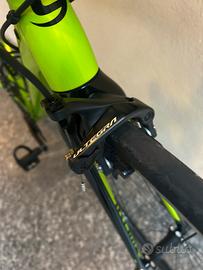 Stupenda Cannondale Caad12 Taglia 54 come nuova telaio in alluminio cannondale speciale (l’ultima bici in alluminio da corsa) forcella in carbonio, montata shimano Ultegra 11v Guarnitura Cannondale 50-34 superleggera, pedivelle 172,5, pignoni 11-28. Ruote DtSwiss RR21Dicut leggerissime gomme pirelli pzero 28mm camere d’aria shwalbe aerotan. Sella Fizik Antares. Reggisella Carbonio Cannondale. Stem Cannondale, manubrio Fsa. Perfetta come nuova.