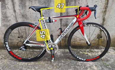 La Cannondale SuperSix EVO è unabicicletta da corsa di alta gamma, nota per la sua leggerezza, rigidità e aerodinamica.È progettata per offrire prestazioni eccezionali su salite, discese e in ogni tipo di percorso. telaio e ruote in carbonio .