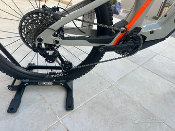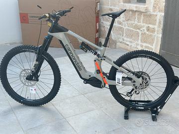 Cannondale Moterra Neo LT1 Telaio Moterra LT Carbon, 27.5" rear wheel, 29" front wheel, 165mm travel, Proportional Response Tuned Suspension, removable downtube battery, alloy skid plate, 55mm chainline, internal cable routing, 148x12mm thru-axle, UDH, 200mm native post mount brake, 1.5” – 1.8” tapered headtube Forcella Fox Float Performance 38, 170mm, Grip Damper 3Pos, 15x110mm Kabolt thru-axle, tapered steerer, 44mm offset Serie sterzo Acros ICR, 1.5" to 1.8", sealed bearings Rear Shock Fox DHX Performance, Coil, 2 pos adj, 230x65mm Motore Bosch Performance Line CX Batteria Bosch PowerTube, 800Wh Carica batteria Bosch 4A Display Top Tube System Controller w/ Mini Remote TRASMISSIONE Cambio SRAM Eagle 90, T-Type Leve cambio SRAM Eagle 90, T-Type, 12-speed Catena SRAM Eagle 70 T-Type, 12-speed Guarnitura e*thirteen e*spec Helix Core, 55mm chainline, 160mm, 34T Pacco pignoni SRAM Eagle 70 T-Type, 10-52, 12-speed FRENI Freni TRP EVO Pro 4-piston hydraulic disc, 220/203mm rotors, 2.3mm thickness Leve Freno TRP EVO Pro hydraulic disc RUOTE Cerchi DT Swiss H 1900 Spline, 30mm inner width, TC (tubeless ready) Raggi DT Swiss Competition, straight pull Dimensioni pneumatico 2.5 Dimensione Ruote 297 Mozzi (F) DT Swiss 370, 15x110mm thru-axle / (R) DT Swiss 370 Ratchet System 18, 12x148mm thru-axle, 6-bolt Pneumatici (F) Schwalbe Shredda Front, 29x2.5", Radial casing, Addix Ultra Soft Foldable, tubeless ready / (R) Schwalbe Albert, 27.5x2.5", Radial casing, Addix Soft Foldable, tubeless ready Front Tire Schwalbe Shredda Front, 29x2.5", Radial casing, Addix Ultra Soft Foldable , tubeless ready Rear Tire Schwalbe Albert, 27.5x2.5", Radial casing, Addix Soft Foldable, tubeless ready Manubrio Cannondale 3 riser, 6061 Alloy, 25mm rise, 8° sweep, 4° rise, 800mm Attacco Manubrio Cannondale 1, 6061 Alloy, 35.0, 40mm, 0° Impugnatura Cannondale TaperRidge Sella Fizik Terra Aidon X5, 145mm, Wingflex, S-Alloy Mobius rail Reggisella Cannondale DownLow Dropper,