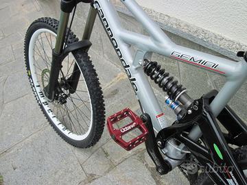 Vendo bici da enduro cannondale gemini. La bici si presenta in ottimo stato, utilizzata pochissimo e con telaio garantito a vita da cannondale. Monta forcella fox, cerchi imperial dh, gomme Kenda nevegal 26x2.5", guarnitura truvativ. Disponibile a spedire