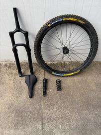 Vendo cannondale habit 3 Taglia S Forcella kashima 36 150mm escursione Ammortizzatore cane creek a molla 450lb 140mm escursione Freni shimano saint 4 pistoncini Cambio shimano deore da 12 velocità La bici è montata mullet 29 davanti e 27.6 dietro c’è anche il cerchione con il copertone da 27.5 per davanti Assieme alla bici vendo una forcella rochshox e un ammortizzatore rochshox e una molla cane creek da 550lb e la sua sella originale della cannondale La bici rappresenta normali segni di usura però tenuta sempre bene controllata sempre Per maggior info contattatemi Grazie