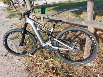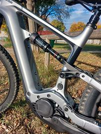 Vendo causa inutilizzo EMTB taglia M 11/2020, con soli 923 km. Telaio in carbonio il triangolo anteriore e in lega di alluminio il carro. Batteria Bosch da 500Wh, batteria integrata nel tubo obliquo e removibile con passaggio cavi integrato. Display Bosch Purion. Cambio SRAM SX EAGLE a 12 velocità con guarnitura Bosch Gen4 w/ custom Ai offset, 34T . Freni a disco idrualici SRAM Level T, 200 / 200 mm. Ammortizzatore Roch Shox Deluxe Select R, DebonAir da 130mm. Forcella Roch Shox Recon RL da 140 mm di escursione. Cerchi WTB STX i29 TCS, 32h, tubeless ready. Pneumatici Maxxis Rekon 29*2.6''. Manubrio Cannondale 3 Riser, 6061 alluminio da 780mm. Reggisella telescopico TranzX dropper con escursione di 125mm in taglia M.
