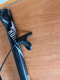 Cannondale MTB trasformata gravel con forcella rigida. Includo anche la forcella ammortizzata Rock Shox RL Gold solo Aria (€250). Freni a disco slx shimano, Cambio shimano slx da montare come da foto. Sella Bontrager nuova. Copertoni ottimi. Taglia XL.