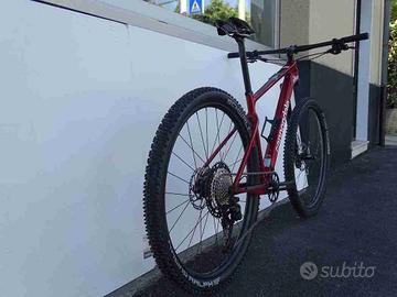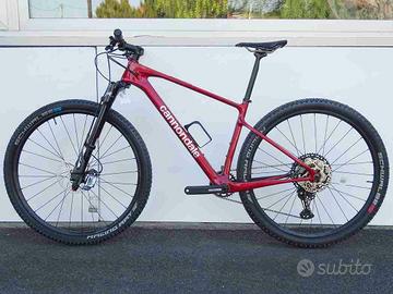 SPECIFICHE TECNICHE Telaio – Carbon, Proportional Response Design, PF30-83, tapered head tube, Speed Release 12mm thru axle w/UDH hanger Forcella – Lefty Ocho, 100mm, Chamber Damper with remote lockout, OppO Spring System, tapered steerer, 55mm offset Serie sterzo – Integrated, 1-1/8 to 1.5″, sealed angular contact bearings Movimento centrale – Cannondale Alloy PressFit30 Catena – Shimano SLX, 12-speed Guarnitura – HollowGram, BB30 83MTB, OPI SpideRing, 34T Pacco pignoni – Shimano XT, 10-51, 12-speed Cambio – Shimano XT Leve cambio – Shimano XT, 12-speed Leve Freno – Shimano XT hydraulic disc Freni – Shimano XT hydraulic disc, 160/160mm XT rotors Grips – Cannondale XC Silicone Handlebar – Cannondale 1 Flat, Carbon, 31.8mm, 9° back, 760mm Saddle – Prologo Dimension NDR, Tirox rails Seatpost – C1 Carbon, 27.2x400mm Stem – Cannondale 3, 6061 Alloy, 31.8, 7° Front Tire – Schwalbe Racing Ray EVO, 29 x 2.25″, SnakeSkin, Addix Speedgrip, tubeless ready Mozzi – (F) Lefty 60 / (R) Shimano 7110, 12x148mm Rear Tire – Schwalbe Racing Ralph EVO, 29 x 2.25″, SnakeSkin, Addix Speed, tubeless ready Cerchi – Stan’s NoTubes Crest MK4, 28h, tubeless ready Raggi – DT Swiss Competition Pneumatici – (F) Schwalbe Racing Ray EVO, 29 x 2.25″, SnakeSkin, Addix Speedgrip, tubeless ready, (R) Schwalbe Racing Ralph EVO, 29 x 2.25″, SnakeSkin, Addix Speed, tubeless ready Wheel Sensor – Cannondale Wheel Sensor TAGLIA SM MD
