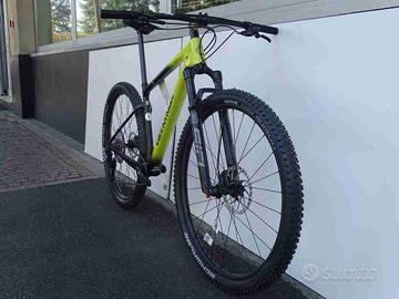 SPECIFICHE TECNICHE Telaio – Carbon, Proportional Response Design, PF30-83, tapered head tube, Speed Release 12mm thru axle w/UDH hanger Forcella – RockShox SID SL Select+ RL, 100mm, Debonair, remote lockout, 15x110mm thru-axle, tapered steerer, 44mm offset Serie sterzo – Integrated, 1-1/8 to 1.5″, sealed angular contact bearings Movimento centrale – Cannondale Alloy PressFit30 Catena – Shimano SLX, 12-speed Guarnitura – Cannondale 1, BB30a, OPI SpideRing, 34T Pacco pignoni – Shimano SLX, 10-51, 12-speed Cambio – Shimano XT Leve cambio – Shimano SLX, 12-speed Leve Freno – Shimano M6100 hydraulic disc Freni – Shimano M6100 hydraulic disc, 160/160mm RT64 rotors Grips – Cannondale XC Silicone Handlebar – Cannondale 2 Flat, butted 2014 Alloy, 31.8mm, 3° rise, 8° sweep, 760mm Saddle – Fabric Scoop Shallow Elite, hollow cro-mo rails Seatpost – C2 Carbon, 27.2x400mm Stem – Cannondale 2, 6061 Alloy, 31.8, 7° Front Tire – Schwalbe Racing Ray EVO, 29 x 2.25″, Twinskin, tubeless ready Mozzi – (F) Shimano MT410, 15x110mm thru-axle / (R) Shimano MT510, 12x148mm thru-axle Rear Tire – Schwalbe Racing Ralph EVO, 29 x 2.25″, SnakeSkin, Addix compound, tubeless ready Cerchi – Stan’s NoTubes Crest MK4, 28h, tubeless ready Raggi – DT Swiss Competition Pneumatici – (F) Schwalbe Racing Ray EVO, 29 x 2.25″, Twinskin, tubeless ready, (R) Schwalbe Racing Ralph EVO, 29 x 2.25″, SnakeSkin, Addix compound, tubeless ready Wheel Sensor – Cannondale Wheel Sensor TAGLIA MD