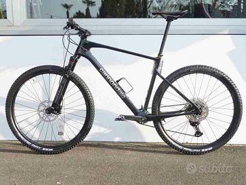 SPECIFICHE TECNICHE Telaio – Carbon, Proportional Response Design, PF30-83, tapered head tube, Speed Release 12mm thru axle w/UDH hanger Forcella – RockShox SID SL , 100mm, Debonair, remote lockout, 15x110mm thru-axle, tapered steerer, 44mm offset Serie sterzo – Integrated, 1-1/8 to 1.5″, sealed angular contact bearings Movimento centrale – Cannondale Alloy PressFit30- 24 Catena – Shimano Deore, 12-speed Guarnitura – Shimano M5121, 30T Pacco pignoni – Shimano Deore M6100, 10-51, 12-speed Cambio – Shimano XT Leve cambio – Shimano Deore M6100, 12-speed Leve Freno – Shimano MT500 hydraulic disc Freni – Shimano MT501 hydraulic disc, 160/160mm RT54 rotors Grips – Fabric Funguy Handlebar – Cannondale 2 Flat, butted 2014 Alloy, 31.8mm, 3° rise, 8° sweep, 760mm Saddle – Fabric Scoop Shallow Sport, steel rails Seatpost – C3 Alloy, 27.2x400mm Stem – Cannondale 2, 6061 Alloy, 31.8, 7° Front Tire – Schwalbe Racing Ray EVO, 29 x 2.25″, Twinskin, tubeless ready Mozzi – (F) Shimano MT410, 15x110mm thru-axle / (R) Shimano MT410, 12x148mm thru-axle Rear Tire – Schwalbe Racing Ray EVO, 29 x 2.25″, Twinskin, tubeless ready Cerchi – WTB STX i23, 32h, tubeless ready Raggi – DT Swiss Champion 2.0 Pneumatici – (F) Schwalbe Racing Ray EVO, 29 x 2.25″, Twinskin, tubeless ready, (R) Schwalbe Racing Ralph EVO, 29 x 2.25″, SnakeSkin, Addix compound, tubeless ready TAGLIA MD