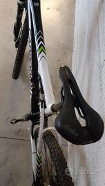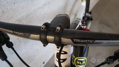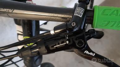 Leggerissima. Forcella lefty bloccaggio al manubrio, ammortizzatore roks shox a bloccaggio remoto. Manubrio e reggisella Truvativ. Copertoni Vittoria Saguaro 26x2.0. Freni Avid e gruppo Sram X0. Qualche segno di usura sui cerchi. Telaio perfetto.