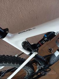 cannondale scalpel si-hi mode World cup carbon 29 top di gamma taglia L con warrenty card e scontrino x garanzia a vita telaio. Il telaio è già stato sostituito in garanzia nel 2023 composto da lefty 2.0 alluminio revisionata lefty center ammortizzatore rock shox monarch revisionato gennaio 2025 trasmissione 1x12 sram gx con 100 km corona nuova 32 absolutback pacco pignoni sunrace 11-50 ruote tubeless canale da 30 american Classic light perfette freni Shimano XT reggisella telescopico ks da 125mm manubrio carbonio 760mm rise 10 bici in ordine perfetta con i pedali che non fornisco pesa 10.9kg