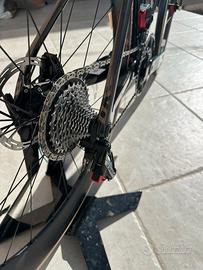 Telaio: SuperSix EVO Hi-MOD Carbon, Gen 5, integrated cable routing, 12x142 thru-axle, BSA 68mm threaded BB, flat mount disc, integrated seat binder, UDH Forcella: SuperSix EVO Hi-MOD Carbon, Gen 5, integrated crown race, 12x100mm thru-axle, flat mount disc, internal routing, 1-1/8" to 1-1/4" Delta steerer, 55mm offset (44-54cm), 45mm offset (56-61cm) Serie sterzo: Integrated, 1-1/8" - 1-1/4" Cambio: SRAM Force AXS, 12-speed Deragliatore: SRAM Force AXS Leve cambio: SRAM Force AXS, 2x12-speed Catena: SRAM Force, 12-speed Guarnitura: SRAM Force AXS Power Meter, 48/35: 165mm (44-50cm), 170mm (52-56cm), 172.5 (58-61cm) Pacco pignoni: SRAM Force XG-1270, 10-33, 12-speed Movimento centrale: SRAM DUB BSA Freni SRAM Force AXS hydraulic disc, 160/160mm PaceLine centerlock rotors Leve Freno SRAM Force AXS hydraulic disc RUOTE Cerchi: Reserve 57|64 Carbon, Turbulent Aero, tubeless ready Raggi: Sapim CX-Ray Aero straight pull Dimensioni pneumatico: 29 Dimensione Ruote: 700c Mozzi: DT Swiss 240, centerlock, straight pull - (F) 12x100mm, (R) 12x142mm, Ratchet EXP 36 Pneumatici: Vittoria Corsa Pro, 700x29c, wide rim, tubeless ready Manubrio: Cannondale SystemBar Road, ultra low drag, full carbon integrated bar/stem: 90x340mm (44-52cm), 100x360mm (54-56cm), 110x380mm (58-61cm) Attacco Manubrio: Cannondale SystemBar Road, ultra low drag, full carbon integrated bar/stem Impugnatura: Fizik Tempo Bondcush Soft, 3mm Sella Fizik Vento Antares R1, carbon rails, 140mm Reggisella: Cannondale C1 Aero 40 Carbon V2, Ti Hardware, 365mm, 0mm offset (44-54cm), 15mm offset (56-61cm) EXTRA 1 Cannondale Gripper Aero Bottles & CarbonGrip Aero Cages, Fillmore tubeless valves, SRAM AXS charger, SystemBar SL Garmin/Wahoo computer mount Per ricerca: sworks specialized derosa 70 merak tarmac sl8 sl7 atheos cannondale supersix trek emonda domane scott addict foil colnago c68 v4rs bmc teammachine pinarello dogma cervelo orbea orca factor canyon duraace disc