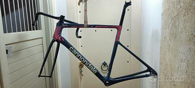 Vendo Kit Telaio Cannondale SuperSix Evo Hi-Mod Rapha Disc, Taglia M 54, Totalmente integrato, zero cavi esterni, completo di serie sterzo, movimento centrale Shimano, perni passanti e tubo sella Hollowgram SL, Telaio acquistato ottobre 2021 con regolare fattura, telaio inutilizzato dal 2023 ad oggi, piega integrata nuova, smontata da bici nuova, misure piega: attacco 110 presa alta 41 cm. presa bassa 43 volendo posso vendere senza piega. Preferisco scambio a mano. Spedizione da concordare a carico dell'acquirente.