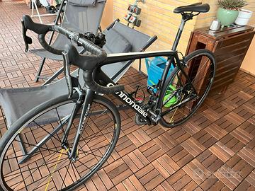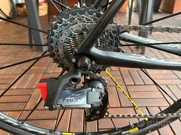 Gruppo Sram Force 12v AXS (elettronico), con guarnitura in carbonio che monta 46/33.