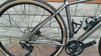vendo Cannondale Topstone 2 2023. Taglia M. Copertone dietro con meno di 100km. Cambio Shimano GRX. Inclusa pompa aria,sotto al porta borraccia. Verrá venduta con attacco manubrio originale, non quello montato in foto