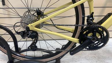 SPECIFICHE TECNICHE Kit telaio Telaio: Topstone Carbon, Kingpin suspension system, SmartSense compatible, 12x142mm thru-axle, 27.2 dropper post ready, BSA 68mm threaded BB, DirectLine internal cable routing, removable fender bridge, multiple gear/bottle mounts Forcella: Topstone Carbon, 1-1/8″ to 1.5″ steerer, 55mm OutFront offset, flat mount disc, internal routing, 12×100 thru-axle, triple bottle/gear mounts, fender mounts Serie sterzo: Integrated, 1-1/8″ – 1-1/2″ Trasmissione Cambio: Shimano GRX 820, Shadow RD+ Deragliatore: Shimano GRX 820, braze-on Leve cambio: Shimano GRX 600, 12-speed Catena: Shimano HG M7100, 12-speed Guarnitura: Shimano GRX 600, 46/30 Pacco pignoni: Shimano HG R7100, 11-34, 12-speed Movimento centrale: Shimano BSA 68 Freni Freni: Shimano GRX 600 hydraulic disc, 160/160mm RT64 rotors Leve Freno: Shimano GRX 600 hydraulic disc Ruote Cerchi: WTB ST i23 TCS, 700c, 28h, tubeless ready Raggi: Stainless Steel, 14g Dimensioni pneumatico: 45 Dimensione Ruote: 700c Mozzi: (F) Formula cartridge bearing, 12x100mm, centerlock / (R) Formula cartridge bearing, 12x142mm, centerlock Pneumatici: WTB Riddler TCS Light, 700 x 45c, tubeless ready Front Tire: WTB Riddler TCS Light, 700 x 45c, tubeless ready Rear Tire: WTB Riddler TCS Light, 700 x 45c, tubeless ready Componenti Manubrio: Cannondale 3, butted 6061 Alloy, 16 deg flare drop Attacco Manubrio: Cannondale 3, 6061 Alloy, 31.8, 7° Impugnatura: Fizik Solocush Soft, 3mm Sella: Fizik Aliante Delta, S-alloy rails Reggisella: Cannondale 3, 6061 Alloy, 27.2 x 350mm Sensore ruota: Cannondale Wheel Sensor
