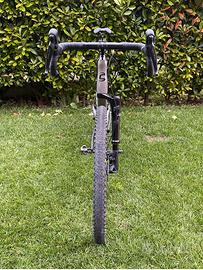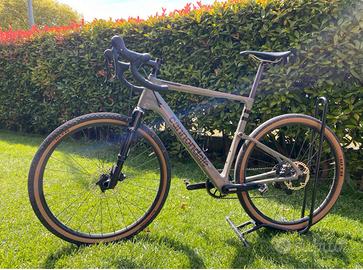 Telaio BallisTec carbon con sospensione Kingpin. Forcella gravel Lefty Oliver, escursione 30mm. Cambio Shimano GRX 800/600 Wide 11 velocità. Freni a disco idraulici GRX 400. Guarnitura Cannondale 1 con SpideRing. Taglia M