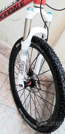vendesi MTB 26 CANNONDALE TOURINE taglia M (160 170) telaio in carbonio Forcella fox series 32 cerchi tubeless in alluminio copertura racket Ron schwalbe pedali spd nuovi con attacchi per le scarpe COMPONENTISTICA NUOVA Cambio alvio 9 Velocità MONOCORONA nuovo peso senza pedali kg10.05 sella performance freni a disco copertoni ottime condizioni in ottime condizioni.
