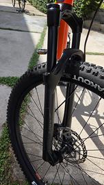 Forcella rockshox bloccabile; regisella telescopico; freni a disco idraulici shimano; cambio shimano deore 11 velocità; pedali Look Geo trekking; telaio in alluminio. Bici praticamente nuova. Usata pochissimo.