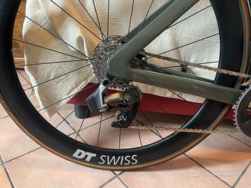 Ruote DT Swiss in carbonio, convertite a tubeless.