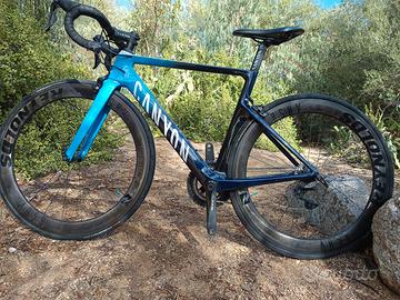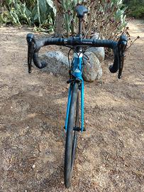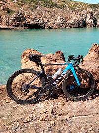 Telaio in carbonio Canyon Aeroad CF SL, forcella in carbonio Canyon Aeroblade SL. Cambio Shimano 105 a 11 velocità, freni Shimano 105. Cerchi Reynolds AR 58/62 C, gomme Continental Grand Prix Attack III, 23 mm/Grand Prix Force III, 25 mm, sella Fizik Arione R5 (Ergon SR Pro Women).