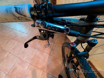 canyon Grand canyon CF sl 7,9 in carbonio, freni shimano XT deore idraulici, cambio Shimano XT deore 10 velocita, forcelle fox terralogic ad aria, telaio in carbonio peso circa 10 chili corone davanti Shimano XT deore 2 velocità, ruote Continental, mozzi swiss