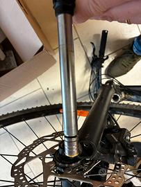 Bici del 2020, secondo proprietario, qualche segno sul manubrio anteriore, cerchio posteriore leggermente piegato ma sostituibile con cifra modica. Corona e catena sotituite di recente e con all attivo 500km principalmente in pianura. Ammortizzatore anteriore funzionante e bloccabile alla forcella. Ruote da 28, taglia telaio XL in alluminio. Perfetta per strada e strade bianche, l ammortizzatore anteriore e breve escursione la rende piu comoda delle gravel