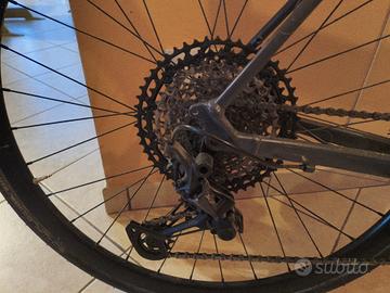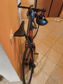 ModelloR096 Roadlite 7 Anno2021 Colori primariArgento, grigio o metallo nudo Taglia del telaio M Materiale del telaio: Alluminio Tipo di manubrio: riser Diametro ruota: 650 B Trasmissione anteriore 2 Trasmissione posteriore 11 Caratteristiche distintive Bici da strada con manubrio piatto (riser). Il colore va dal grigio al verde scuro. Gruppo Shimano Ultegra e freni idraulici Shimano. Sella Brooks
